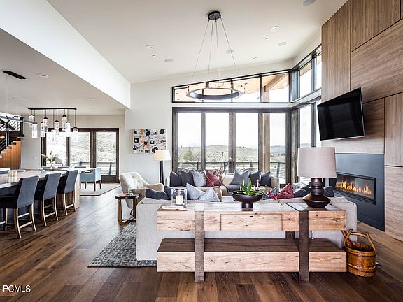Looking to experience the great outdoors of Utah's Wasatch Back? There is no better way than 6110 E Blue Wing in Victory Ranch. As you enter this stunning mountain modern home, you are greeted by massive windows that showcase the 180° views of mountains, including Deer Valley ski resort and the sweeping rock cliffs. Every room in this gorgeous residence has views. Once these enormous views are digested, you realize you are standing in a perfectly designed home that is prime for private and entertainment living. On the main floor, you are spoiled with an incredible gourmet kitchen that is outfitted with Thermador appliances, two islands and quartz countertops. The remainder of the luxurious great room is artistically designed with custom light fixtures, custom dining table and chairs, custom couches and chairs...that remain with the home. Just off the main floor is an expansive furnished covered deck that is perfect for outdoor living. The lower level, that hosts another master suite, bunk bed room, wine cellar, full wet bar, and a flex room (that could be a home theater or gym) is centered by an extra-large family room that leads onto another expansive furnished outdoor living space. As for the layout, the home was designed to include four master suites, thoughtfully placed to ensure each one has privacy, including two on the main level, one on the top floor and one in the lower level. This is a home you don't want to miss! Victory Ranch is a private, four-season community set amidst 6,250 acres along a four-mile stretch of the Upper Provo River, just 15 minutes from Park City and Deer Valley. Owners have coveted access to Victory Ranch's private golf course-ranked #1 in Utah 2 years in a row, world-class fly fishing, 30+ miles of hiking and biking trails, 5-stand shooting facility, archery, backcountry yurts, two-acre lake and fishing ponds, 3,500 acres of backcountry, multiple clubhouses and restaurants, spa, fitness center and much more!