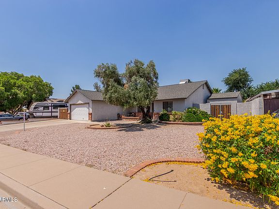 This single-level residence situated in Mesa, boasts 3 spacious bedrooms and 2 bathrooms, offering a comfortable 1,290 square feet of living space on an expansive 8,014 square foot lot. Perfectly situated near major freeways, this property combines convenience with tranquility. You'll be captivated in the back yard by the lush green lawn adorned with raised flower beds, creating a picturesque outdoor oasis. Enjoy entertaining with a built-in BBQ and an underground BBQ pit, along side your very own koi pond ideal for gatherings with family and friends. The interior features tile flooring in the main living areas, complemented by cozy rugs in the bedrooms, Ceiling fans throughout, ensuring comfort. The split floor plan provides privacy and functionality, making it perfect for families. With low-maintenance landscaping, you can spend more time enjoying your home and less time on upkeep. Recent updates include a roof replacement in 2019 and an AC unit replaced in 2018, with a new condenser added in 2022. This unique property comes with no HOA, giving you the freedom to personalize your space as you wish. Don't miss the opportunity to make this exceptional home yours! Investors great opportunity to buy with Tenants in place..