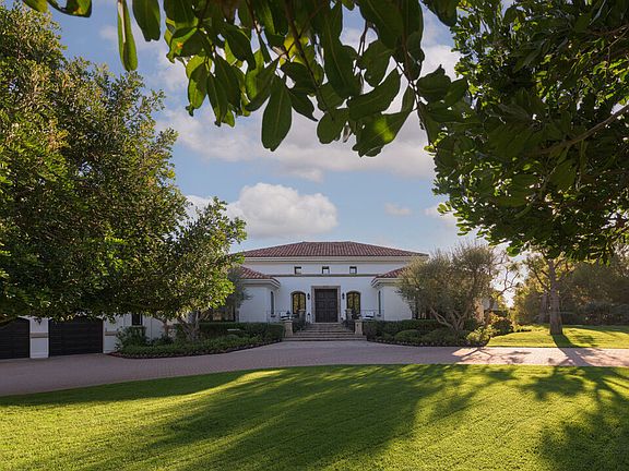 Welcome to an exceptional luxury estate where elegance meets breathtaking views. Upon arrival, a circular driveway with a double-gated entry leads you through beautifully manicured lawns and pristine landscaping. The stately approach ascends to a grand front porch, offering commanding mountain vistas. A double-door entry invites you into a foyer with soaring ceilings, recessed lighting, and crown molding, set against the backdrop of stone tile floors and expansive front windows.Straight ahead, sliding wood doors reveal a formal living room with two-story ceilings, a grand stone fireplace, and sliding glass doors that vanish into pocket walls, opening to an ocean-view deck stretching the length of the home. Adjacent, the formal dining room features a sparkling chandelier, French windows, and a balcony overlooking the lush front yard.The family room boasts high-beamed ceilings, an entire wall of built-ins, and another grand fireplace. It, too, opens onto the expansive deck, offering both private and shared dining areas, all with sweeping ocean views. The gourmet kitchen is a chef's dream, with stone counters, a six-burner range, double ovens, and a large island with bar seating. Adjacent, a sunlit breakfast room with rounded walls and cathedral ceilings opens to the deck through French doors.An impressive home theater await that includes plush seating, a concession room, and direct backyard access. Nearby, a wine cellar with a tasting room sets the stage for intimate gatherings. The entertainment room, complete with a wet bar and billiards, offers seamless access to the outdoor oasis.The home's private quarters include multiple luxurious bedrooms, each with en-suite bathrooms and panoramic views. The master retreat is a sanctuary with wood floors, a chandelier, and a private deck overlooking both the ocean and pool. The two spa-like master baths feature a freestanding tub, marble shower, and double extensive closets.The backyard is an entertainer's paradise. Multiple lounging and dining areas, a sport court, and a rectangular pool with an in-ground Jacuzzi are framed by ocean views. Outdoor amenities include a fully equipped kitchen, fire pit, and pergola-covered dining space. Beyond, a serene garden with box planters, citrus trees, and even vineyards complete the estate's lush grounds.With a three-car garage and space for over 15 vehicles for guest parking, cutting-edge security systems, and meticulous design throughout, this estate offers unparalleled luxury and privacy in an extraordinary setting.