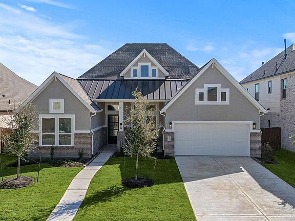 Welcome to the Lakeway -- a breathtaking one-story home that perfectly balances elegance and comfort all under one roof. The exterior features our charming painted brick, which adds timeless curb appeal. Entering into soaring ceilings that lead to the 15-foot vaulted ceiling, warm wood-look tile, and a cozy fireplace. This home is perfect for entertaining indoors and outdoors, sliding glass doors open to the covered patio that overlooks the lake, and the kitchen has double islands to display all the gourmet creations from the double ovens. Unwind in the spacious primary bedroom or in the ensuite bath showcasing an oversized shower and freestanding tub. Enjoy Meridiana's resort-style amenities - a lazy river, pool, an onsite cafe, a fitness center, and tons of events for residents to enjoy. Note: The home is under construction, as such, photos are REPRESENTATIVE and not of the actual home. Home selection photos in gallery. Estimated completion is December 2025.