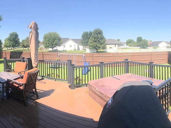 This move in ready home has a spacious open floor plan with vaulted living room ceiling and tres kitchen, dining and master ceilings. The updated exterior painted brick gives you great curb appeal, privacy wood fenced yard, underground sprinklers, concrete landscape edging and large composite deck with hot tub that stays. Beautiful kitchen with granite counter-tops, gas stove, large cabinet with roll out shelving and separate pantry. Three bedrooms on the main floor and laundry with a wash sink. Tile entry with nice coat closet. Master bath has double sinks and a large master closet. Entertain is amazing in this 9 ft basement with wet bar with granite counter-tops that includes wine fridge and kegerator. Two additional bedrooms in the basement are conforming and a guest bath.