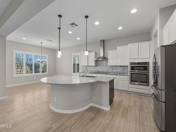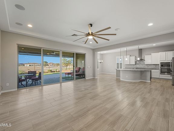 Located in the sought-after 55+ gated community of Lone Tree, this upgraded home features two primary bedrooms, 2.5 baths, and thoughtful touches throughout. The modern open kitchen with its oversized island flows into a spacious great room overlooking the covered patio and backyard with beautiful golf course views perfect for that indoor-outdoor Arizona living.