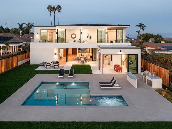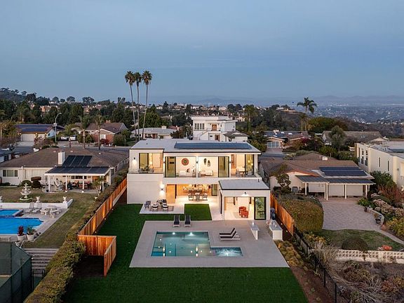 Welcome to your dream home, where modern elegance meets luxurious comfort. This stunning new construction property boasts a host of exceptional rare features, making it the perfect sanctuary for those with discerning taste. One of these rare-to-find features in La Jolla is the large flat backyard and breathtaking ocean and canyon views from every room, perfect for relaxing and taking in the serene canyon surroundings. As you step inside, you'll be greeted by grand 25-foot ceilings in the entrance and living room, creating a sense of awe and spaciousness. The European-designed oak wood flooring and exquisite marble tile throughout exude sophistication and style. The home offers 11-foot ceilings in every room, enhancing the open and airy feel. The expansive flat lot provides ample space for outdoor entertainment, featuring a saltwater heated pool, BBQ area, and jacuzzi, with enough room left for a pickleball court. This smart home comes equipped with a cutting-edge smart home system, ensuring convenience at your fingertips. Surround sound throughout the home creates an immersive audio experience, while multi-zone climate control allows you to tailor the comfort of each space to your preference. Car enthusiasts will appreciate the oversized three-car garage, designed to accommodate a lift for car collectors. The guest house cabana, complete with a kitchenette and full bathroom, offers a private retreat for visitors. Each of the all en-suite bedrooms is a haven of comfort, featuring walk-in closets and luxurious finishes. The walnut and oak cabinetry throughout the home adds warmth and character. A custom under-staircase wine and bar shelf is the perfect touch for those who love to entertain. The large bedroom downstairs is ideal for guests or multi-generational living. This home is also equipped with solar panels, ensuring energy efficiency and sustainability. The state-of-the-art Thermador and Miele appliances in the gourmet kitchen will delight any chef. This property is more than just a home; it's a lifestyle. Don't miss the opportunity to make this extraordinary residence your own.