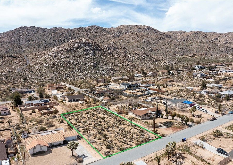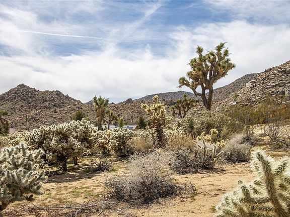 Exceptional Modern Design: Located in coveted Upper Friendly Hills with views of Joshua Tree National Park. Split floorplan – master suite on one side and guest bedrooms on the other. Great room which gathers living space, dining area and kitchen into a singular central social location, radiating outward to the private living quarters, forming a winglike structure, with an exterior courtyard area enhancing the interior spaces. 1,630 square feet of living space, spread out over 3-bedrooms and 2-bathrooms. Purchase includes vacant parcel on the high side of the street, with approved STAMPED building plans, completed grading permit and percolation test with arborist survey base on current joshua trees on parcel(buyer to check). Ready to build. Great location. Hike to the nearby boulders or lounge indoors gazing out at the basin below. Amazing opportunity to live high up in the hills of South Joshua Tree near the National Park. APN: 0588-421-04.