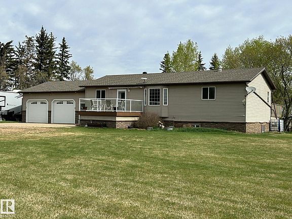 Great family home on gorgeous 3 acres a few minutes NW of Westlock, about a ½ hour to St Albert. Room for everyone in this 1770 sq ft 5 bdrm, 3 bath bungalow. Substantial upgrades over the past 20 years include siding, soffits, paint, HOT WATER ON DEMAND, high efficiency furnace, wood stove, and back deck. In 2018 CENTRAL AIR CONDITIONING was added along with a GENSET SYSTEM which automatically turns on if the power goes out and powers the whole house. At that time new flooring and a maintenance free front deck were also added. Other features are IN FLOOR HEATING in basement, pantry, 3 pce ensuite with soaker tub, main floor laundry, main floor office, back up sump pump system. Heated garage built in 2016 has 2 floor drains and a handy back porch area for boots and coats. Main floor also has a large flex room and office space. Garden area and raised garden beds, storage sheds, mature trees and view from front deck of a small lake complete this great property. Even room for animals on this 3 acres.