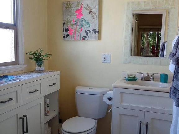 The single comes furnished and with basics in the kitchen, bedding and bath linens. Main room is 12 x 17 and has Oak hardwood floors. The tiled-floor kitchen has custom Euro-style cabinets, granite countertops, a gasu fstove w/oven and a refrigerator. Adjacent dining area has wainscoting. The windowed bathroom has a tiled floor and walls stall shower. There is a white Euro-styled vanity w/matching cabinet. Large walk-in closet has modern frosted glass doors & built-in shelving throughout. Unit has four large double-paned windows.