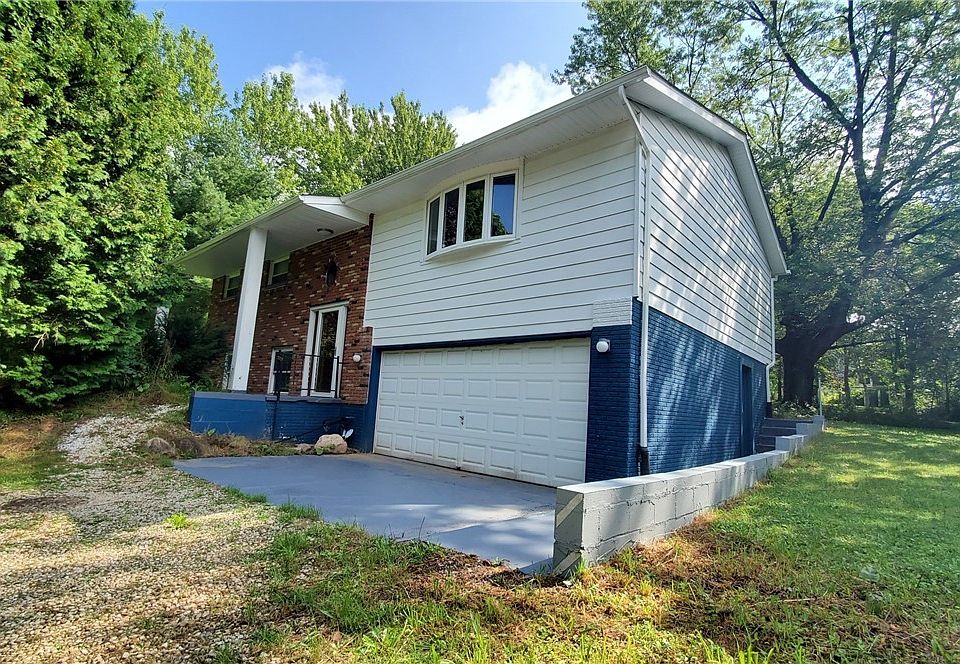 Enjoy the long drive back to this spacious 4 bedroom bilevel on 1.49 acres with plenty of trees! Main level has an open living room and dining room and an oak kitchen with appliances. 3 bedrooms are down the hall with a full bathroom that also connects to the master bedroom. The lower level features a rec room with fireplace and a 4th bedroom with a sink & shower off of it. Home highlights include a front porch, 2 car attached garage, private park-like lot, large shed, new roof (2020), new well pump & holding tank (2020), and newer front door (2016). Lots of potential in this home but does need some TLC. Selling as is.