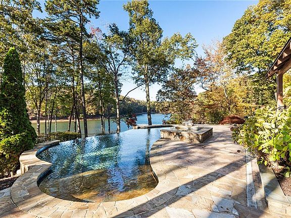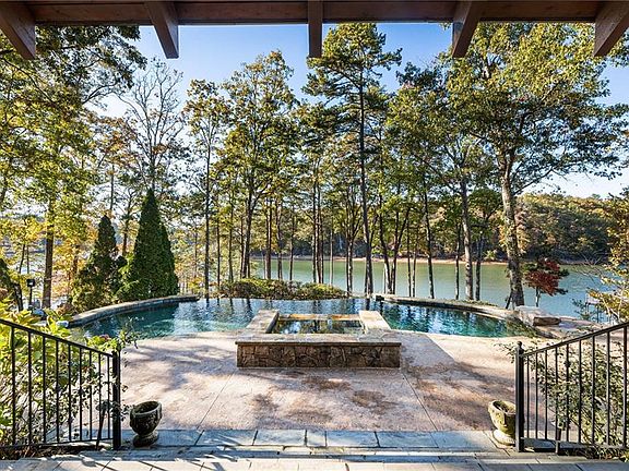 Every now and then, a property captures the very essence of lakeside living, this is that place. Set behind a private gate at the end of a quiet cul-de-sac, this extraordinary Lake Lanier retreat rests on 1.5 acres with over 300 feet of deep-water shoreline and breathtaking west-facing views that frame unforgettable sunsets. A charming winding drive leads to the residence, while outdoor living takes center stage with a heated infinity pool and spa, multi-level slate patios, and a gorgeous wood-burning stone fireplace beneath a covered pavilion with rough-sawn pine beams and tongue-and-groove ceiling. Just below the pool, a second stone fire pit near the shoreline invites evening gatherings under the stars. Down a gentle, landscaped path lies a newer 32x32 double-slip party dock, the largest size allowed on Lake Lanier plus an additional guest dock, both in year-round deep water. Inside, natural light and lake views fill every corner. The primary suite offers a private sitting room and sunroom. With four bedrooms and four and a half baths, the home combines comfort and function with smart updates throughout, including three brand-new highly energy efficient 2.5-ton, 15-SEER two stage HVAC systems coupled with all new smart thermostats for year-round climate control. Located just 10 minutes to downtown Buford, where charming boutiques, local restaurants, and live music fill the historic square. A short, scenic drive connects you to several of North Georgia’s acclaimed wineries, offering weekend escapes just beyond your doorstep. A three-car garage with workshop, expansive covered two-car carport, and brick driveway provide ample space for guests, watercraft, and weekend gear. Whether a primary home, family retreat, or luxury short-term rental, this property captures the spirit of Lake Lanier living - peaceful, inviting, and impossible to forget.