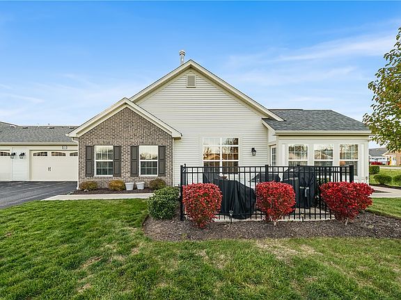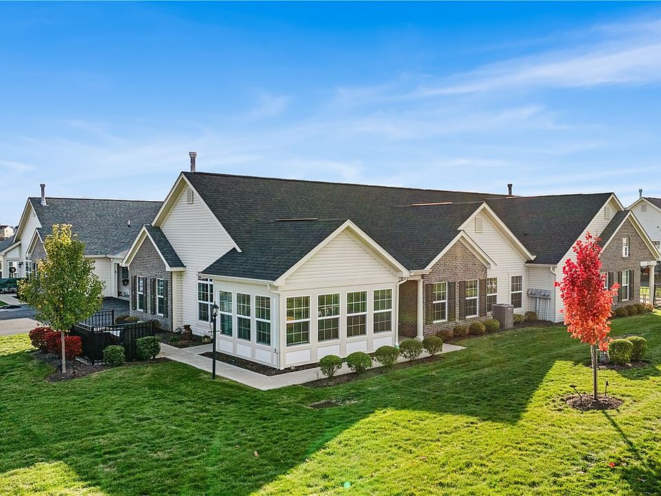 Discover effortless living in beautiful Scenic Ridge by Weaver Homes! Tucked away on a quiet cul-de-sac, this stunning patio home offers a bright open layout accented w/ vaulted ceilings, Pella windows, & a warm gas fireplace. The gourmet kitchen shines w/ white soft-close cabinetry, striking granite countertops, subway tile backsplash, & SS appliances. Enjoy versatile spaces throughout including an open dining area, gorgeous sunroom & a private den w/ glass paneled French doors. The spacious primary suite offers a walk-in closet & luxurious bath w/ an expansive quartz dual-sink vanity & custom tiled shower. Step outside to a private patio & take advantage of neighborhood amenities featuring a clubhouse, fitness center, outdoor pool, & pavilion w/ a rustic stone fireplace. Full size 2 car attached garage w/ convenient attic storage! Condo dues cover grass cutting, landscaping, snow removal, & exterior maintenance. Minutes from historic Harmony, Zelienople, and all things Cranberry!