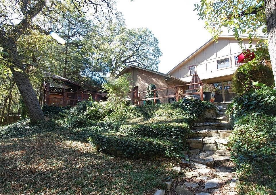Outstanding home in sought after Shorewood Estates. Naturally wooded splendor with a seasonal creek and lighted footbridge from the semi circle drive. Plenty of parking with the extra parking pad. This gem of a well maintained home has 4 bedrooms, 3 baths, 2 living areas with a third possible game room, office or 5th bdrm. Charming eat in kitchen with butler pantry flows to formal dining. The large upper bdrm with built in desk & Murphy bed has its own rear balcony and front view. Backyard has shop & extra storage area. Notice an abundance of closets in this wonderful well cared for home and enjoy the flagstone patio and wood deck with cabana while observing birds, squirrels, and nature. Motivated seller.