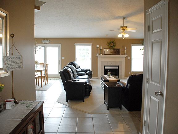This full brick ranch home is located in the desirable Keystone Subdivision. You'll appreciate the large foyer as you enter this very well maintained home. The open floor plan is perfect for gatherings! Upon entering the living room, you notice the beautiful flooring, high ceiling and the ventless fireplace that is flanked by large windows overlooking the backyard. The open, eat in kitchen boasts an abundant amount of counter space, lovely raised panel oak cabinetry and a separate pantry. The laundry room is conveniently located between the kitchen and the spacious 2 car garage. The owners suite offers a tray ceiling with ceiling fan, a large walk in closet and en suite with a double vanity, whirlpool tub and a separate shower. The other two bedrooms are very roomy; one with vaulted ceiling and palladium window and both having nice sized closets. Outside, you will find plenty of room for entertaining on the aggregate patio enclosed in the fully fenced, private backyard. Also outside is an outbuilding that offers you even more storage. Make sure to take notice of the expanded aggregate driveway when you check out this fantastic home!