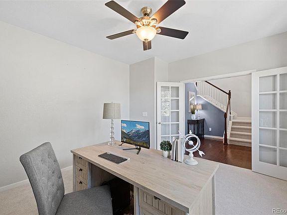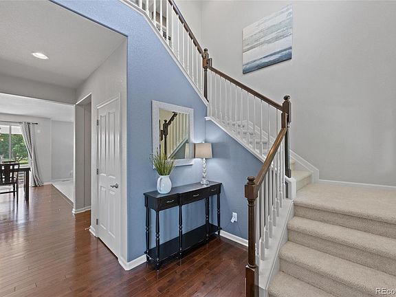 This stunning Wheatlands home features 5 bed/3.5 bath and just over 3641 Sq. Ft.+ office and finished basement. The main floor boasts an open floorplan with espresso engineered flooring, spacious living room, warming gas fireplace, dining room with direct access to the backyard space, a walk-in pantry with extensive storage, quartz countertops with waterfall edge, custom marble backsplash, double oven and stainless steel appliances. The second floor boasts 3 secondary bedrooms with ample closet space, a full bath with tub/shower and double vanity, laundry room conveniently located upstairs (washer and dryer included). The relaxing primary retreat is also found on the second-floor and has a 5-piece ensuite with soaker tub, spacious walk-in closet with built-in storage, and dual vanity with granite countertop. The well thought out and professionally finished basment offers a sizeable bar complete with quartz counters, stone accent wall with bottle storage, included beverage fridge, and an entertainer's dream island with seating for 10. The fully fenced backyard features a firepit with built-in bench seating, covered patio and you'll bea ble to enjoy the privacy of having an exterior lot not backing to another home. Wheatlands HOA includes access to the community pool, nearby YMCA with rec center and pool, nearby parks, playgrounds and trails and the highly rated Cherry Creek Schools. Enjoy all of these great amenities, privacy and space while still being centrally located with quick access to shopping, dining, and recreation in the nearby Southlands area. This home is also centrally loacted with easy access to I-225, 470 and I-70 and just 25 minutes of DIA abd 35 minutes of Denver. Don't miss your opportunity to own this gorgeous home, schedule your showing today!