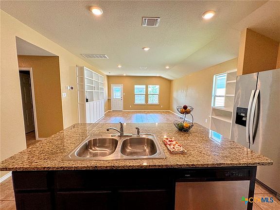 Spacious open floor planBuilt-in shelvesGranite countertopsElegant ceramic tile flooringLarge island