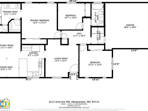 - Total interior livable area: 1,419 sqft