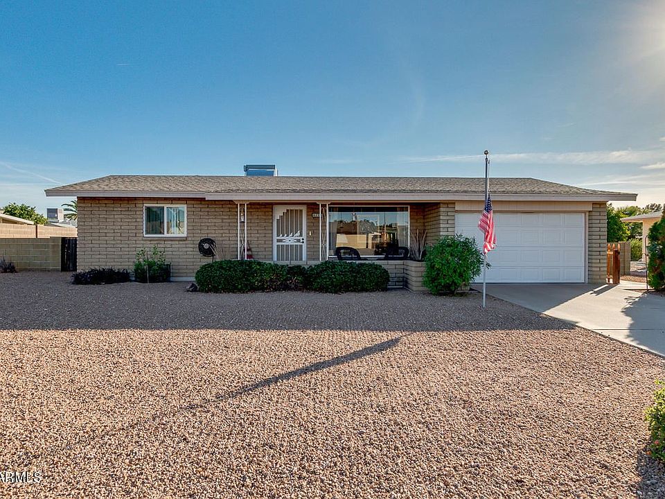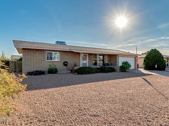 Welcome to Dreamland Villa, a 55+ community and this lovely home with incredible curb appeal! A large covered front porch highlights the distinctive styling of this all block, two bedroom home. As you enter, you'll notice dual pane windows & light, bright, spaces. The kitchen has beautiful white cabinets, refrigerator, microwave, dishwasher, and flows into the oversized laundry center with built-in cabinets, washer & dryer are included. Two nice sized bedrooms are cozy with plush carpet. Kick back in the AZ Room designed for year round use or head out to the incredible, fenced back yard and enjoy the mature fruit trees, garden, patio, and storage shed. The big items have been done, AC, water heater, dual pane windows, water softener, & no popcorn ceilings.