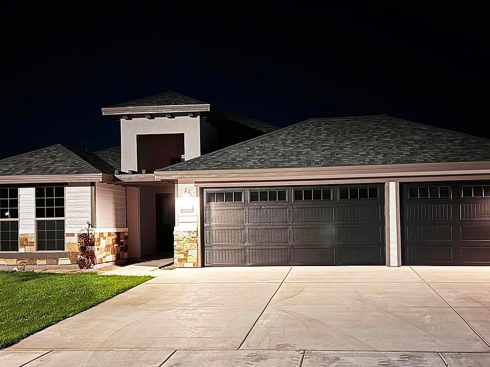 This stunning 5-bedroom, 3-bathroom home offers the perfect blend of modern design and thoughtful upgrades throughout. Built in 2024, it features a well-designed split-bedroom layout with three full baths, making it ideal for both everyday living and entertaining. Inside, you’ll find knotty alder cabinetry with soft-close doors and drawers, granite countertops, and upgraded light fixtures that bring warmth and style to every room. The spacious primary suite includes a walk-in closet, double vanities, a soaking tub, and a separate shower for the ultimate retreat. Enjoy the outdoors with a large covered back patio, plus sod and sprinklers in both front and back yards for easy upkeep. The oversized 3-car garage provides plenty of storage and parking. With its quality finishes, functional floor plan, and attention to detail, this home truly has it all—move-in ready and built to impress!
