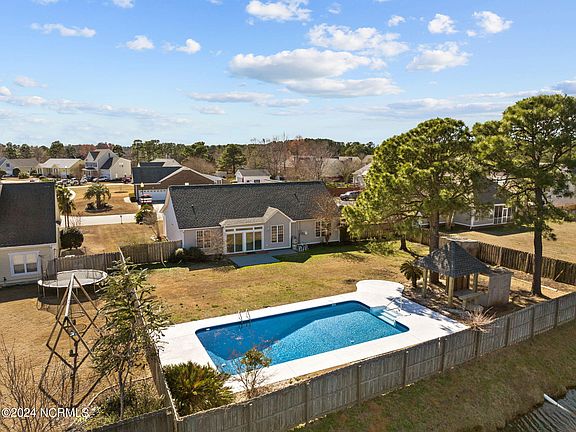 Welcome to 6113 Sentry Oaks Drive, a lovely 4 bedroom, 3 bathroom home located in the highly desirable community of Sentry Oaks. Boasting over 2,000 square feet of living space, this home is perfect for families or those who love to entertain. As you enter the home, you'll immediately notice the open-concept floor plan, complete with tall ceilings and moldings. The home is freshly painted and the main floor features new luxury plank flooring throughout. The kitchen has granite countertops. The bright and airy living room is anchored by a gas-log fireplace, creating a warm and inviting atmosphere for relaxing with friends and family. The split-bedroom floor plan ensures privacy, with two spacious bedrooms on the left side of the home that share a bathroom, and a master bedroom on the right side of the home with an en-suite. The finished room/bedroom above the garage has a full bath and offers additional space that could be used in many ways, such as a playroom, media room, or home gym. Step outside to the backyard oasis, complete with an in-ground pool. The backyard is fully fenced in for privacy, making it the perfect spot for outdoor entertaining or simply relaxing in the sun. The home is situated on a large lot that backs up to a pond, creating privacy and a peaceful setting. Located in a friendly neighborhood close to Carolina Beach and Kure Beach, this home is in a desirable school district and offers easy access to local restaurants, shopping, and entertainment. Don't miss the opportunity to make this home your's today.