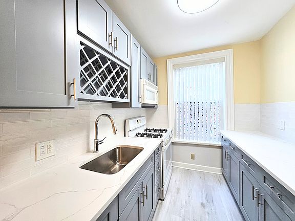 Radiant and spacious two bedroom apartment in Bensonhurst. This second floor apartment boasts two bedrooms, eat-in kitchen and separate living room. The eat-in kitchen has gray cabinetry with modern silver hardware, white marbled countertops and pretty white subway tile backsplash. There is also a dedicated dining area with a closet. Other features include french doors, Amazing natural light exposure, ample closet space and hardwood flooring throughout. Heat and hot water included; cooking gas and electricity are separate. Close proximity to the N and F train subway stations, local buses, shopping, dining, parks and everything else Bensonhurst has to offer!