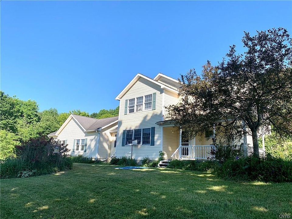 Welcome to the perfect family country home! The views are amazing and just 15 minutes from Cortland, 35 minutes to downtown Syracuse and minutes to hiking, skiing and snowmobile trails. This is a well-built, poured foundation, 4 BD, 2.5 BA built in 1999 colonial home on 1.22 acres. Highlights include a large open granite-countertop kitchen with newer stainless appliances, first floor office/bedroom, first floor laundry, red oak floors with picture-frame pattern throughout, a beautiful master bath you will fall in love with, radiant heated floors, pellet stove, front porch with stunning views, 2 car attached garage and a full dry unfinished basement. Come make this your new home!