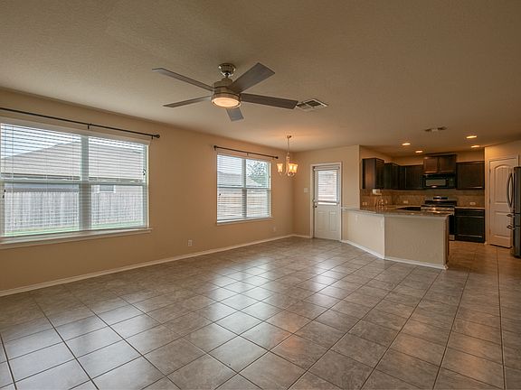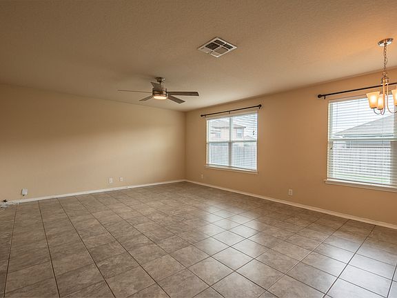 Welcome to 6114 Hackberry Pond, a beautifully maintained 3-bedroom, 2.5-bath home boasting over 2,043 sq ft of stylish living space. From the charming brick exterior with unique diamond design to the inviting arched entry, this home offers exceptional curb appeal and a warm welcome. Step inside to freshly painted interiors, upgraded LED lighting, and a bright, open-concept layout. The living and dining area is filled with natural light, featuring a modern nickel-finished chandelier. The gourmet kitchen is a chef's dream with granite countertops, tiled backsplash, recessed lighting, ample cabinetry, black appliances, and a walk-in pantry. Upstairs, a massive loft offers flexible space for a media room, playroom, or home office. The spacious master retreat includes a walk-in closet and a luxurious en-suite bath with a floor-to-ceiling tiled shower, soaking tub, dual vanities, and chrome fixtures. Two generously sized bedrooms feature wide closets, and share a full bathroom with a tiled tub and nickel fixtures. Enjoy the outdoors in the large backyard with a covered patio, perfect for entertaining or relaxing evenings. Don't miss out on this beautiful home - schedule your showing today!