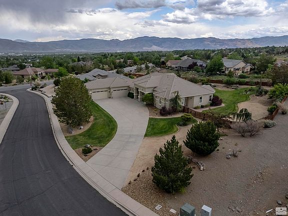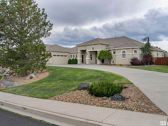 Welcome to 6114 Mesa Road. This Southwest Vistas single story 3642 sq. ft. 4 bedrooms with an additional office/den, 3 full bathrooms and a 4 car garage for all your toys and tools. Grand entry into living room and dining room. Kitchen and and family room work together. Kitchen includes pantry and large island with plenty of countertop and cabinet space. The many windows provides best views of the mountains., The large private primary suite enjoys it's own wing and includes two walk in closets and dual sinks, separate tub and shower and a gas fire place. Sitting on .81 acres of manicured landscape this spacious backyard includes a fire pit, horse shoe pit, gravel area for extra outdoor storage or for the kids swing set and includes great city and mountain views. Perfect yard for volleyball, badminton and croquet games that were all played here. Truly, a great yard to entertain the kids and the kid in you. Includes apple trees, pear tree, dwarf peach tree and grape vines. Great hiking trails through out the Vistas and all only 20 minutes to Airport and 30 minutes to Mt. Rose and Tahoe. Five ceiling fans and two gas fireplaces throughout the home. Two zone heating and A/C systems, built in surround sound speakers in family room, attic access with extra storage in garage. washer dryer? fridge? island cover? barn door? what else?