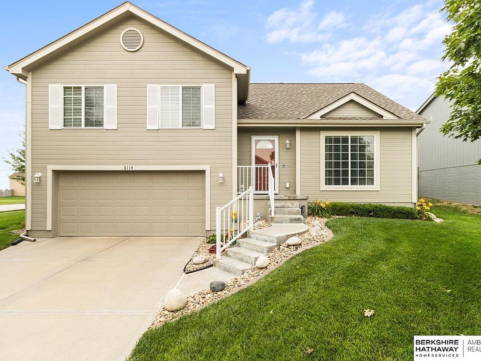 Adorable, well maintained, and space for days! This darling multi level home has been lovingly maintained for the last 10 years, and is ready for you to call it home! Fantastic curb appeal on a large corner lot, fully fenced, with beautiful landscaping in the front and back. As you enter, you are greeted with a large, cozy family room with fireplace. Ascend the stairs to the well appointed, and wide open kitchen with plenty of storage. Three bedrooms up, with a large primary suite with walk in closet. The basement is an entertainer's dream with a freestanding bar and plenty of space for all your favorite activities. Additional sub-basement provides laundry space, utility, and extra storage. Extra deep garage great for storage and hobbies! Millard school district and close to everything. This one won't last long!