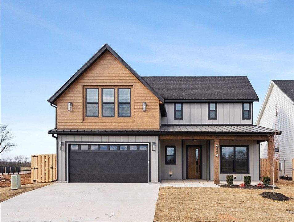 Fantastic opportunity in brand new subdivision in highly sought SW Rogers! This LIKE NEW transitional semi-custom home features an expansive open floorplan with wood beamed, vaulted ceilings - making it ideal for entertaining. The main floor features a chef's kitchen with built in microwave and oven, adjacent to a custom vent hood atop your gas cooktop. Upper mullion cabinetry throughout the kitchen surround the expansive waterfall island! Completing the main floor is the primary bedroom with an immaculately designed en-suite bathroom. Hardwood treads lead you upstairs to 3 additional bedrooms and 2 full bathrooms. Not to be overlooked is your fully fenced backyard to enjoy from your serene covered patio with ceiling fans and in ground irrigation system. Prime location, minutes to shopping, schools and steps away from Greenway Trail - with countless upgrades throughout, don't miss this opportunity! Property is also listed FOR LEASE MLS#1318097
