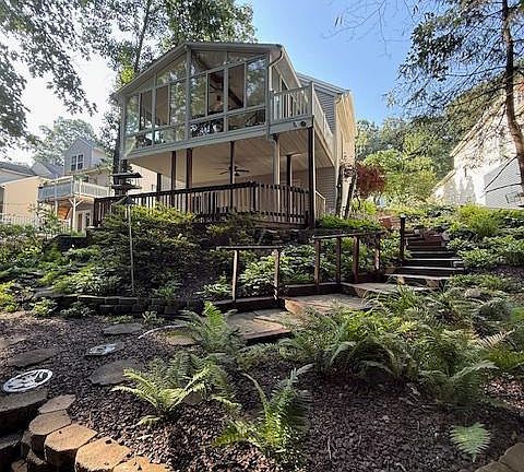 Take a look at this home! Meticulously maintained, lots and lots of storage space and wait until you step in the Sunroom! New roof in 2023, Enjoy heated Sunroom while watching deer and turkey walk through the wooded area, finished walk out basement to deck and fire up the grill! The landscaping will set the tone for relaxation in your own little oasis. 1st floor master bed, full bath and laundry a plus! There are 2 HOA fees for a total of 110.00 which allows access to neighborhoods in ground pool, rec center, tennis courts and maintenance of common grounds and beautiful lake. Window blinds and curtain rods convey with property.