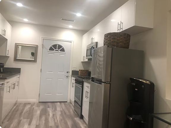 All brand new modern secluded executive guest house welcomes you. The unit stands alone with a private gated entrance and plenty of off street parking. 1 dedicated spot for sedan and additional parking if needed. Very close to public metro rail. Boasting full size private kitchen and full bath room. 400 sq feet of design living. All amenities include: toiletries, towels and linens. We are close: Malibu, Pepperdine, UCLA, Hollywood, lax and major studios. Utilities included. No washer dryer. Full kitchen. Close to metro. No yard included. Brand new guest house. No smoking. Small dog or cat.