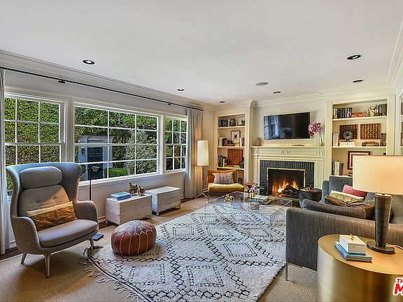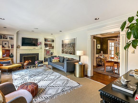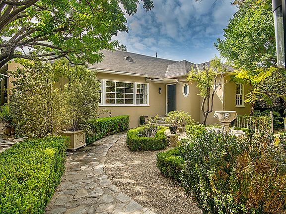 ULTRA-PRIVATE DESIGNER RETREAT WITH POOL IN BEVERLY GROVE. Enter this pristine 1940's traditional oasis through a beautifully landscaped, fully enclosed romantic garden with fountain. The interior foyer leads to a generous living room with a wood-burning fireplace and large windows overlooking the garden. An adjacent dining room opens to a stunning, redesigned center-island kitchen including a butler's pantry with wine fridge, marble counters, Lacanche and Sub-Zero appliances, and two Fisher Paykel dishwashers. Both the kitchen and dining room have French doors leading to a covered outdoor dining area, pool and spa. The sumptuous ensuite master with its own fireplace also has French doors accessing the pool area. Period details such as wainscoting, crown moldings and built-ins preserve the home's unique character. Completely surrounded by plush, mature greenery on a very large lot, the seamless, indoor/outdoor flow of the home offers a true entertainer's paradise in an ideal location.