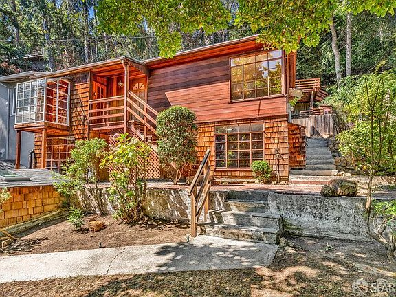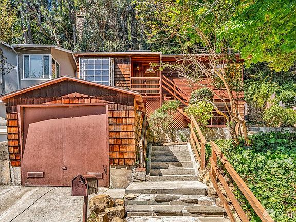 Montclair Hills vintage 2BD/1.5BA cottage w/canyon views & sizeable potential. Perched on an upslope 9500 sf lot, this 1926 home includes a 1980s primary suite addition that may bring the home to approximately 1400 sf (buyers to verify). Located on a quiet cul-de-sac just off Thornhill Dr., near Thornhill Elem & the Montclair Swim Club, this multi-level home offers original charm, natural light, & abundant opportunity for its next owner's vision. Main lvl features LR w/ open beam ceilings, wood finishes, wood-burning stove, & large windows framing leafy hillside views. DR flows easily for entertaining. Vintage kitchen offers ample cabinets & counter space, ready for updates or enjoyed as-is. A versatile bonus rm is ideal for office, den, or studio. Upper lvl primary suite includes a large BR, soaking tub, & direct access to wraparound deck w/serene views - a private retreat in the trees. One lvl below, a 2nd BR or office pairs w/ adjoining powder rm. Basement offers finished flex space w/ wood paneling, brick details, bonus BA, & options for hobbies, media, or guests. Outdoor living includes multiple decks, terraced patios, & garden pathways. Convenient to Montclair Village, parks, schools, & Hwys 13/24.