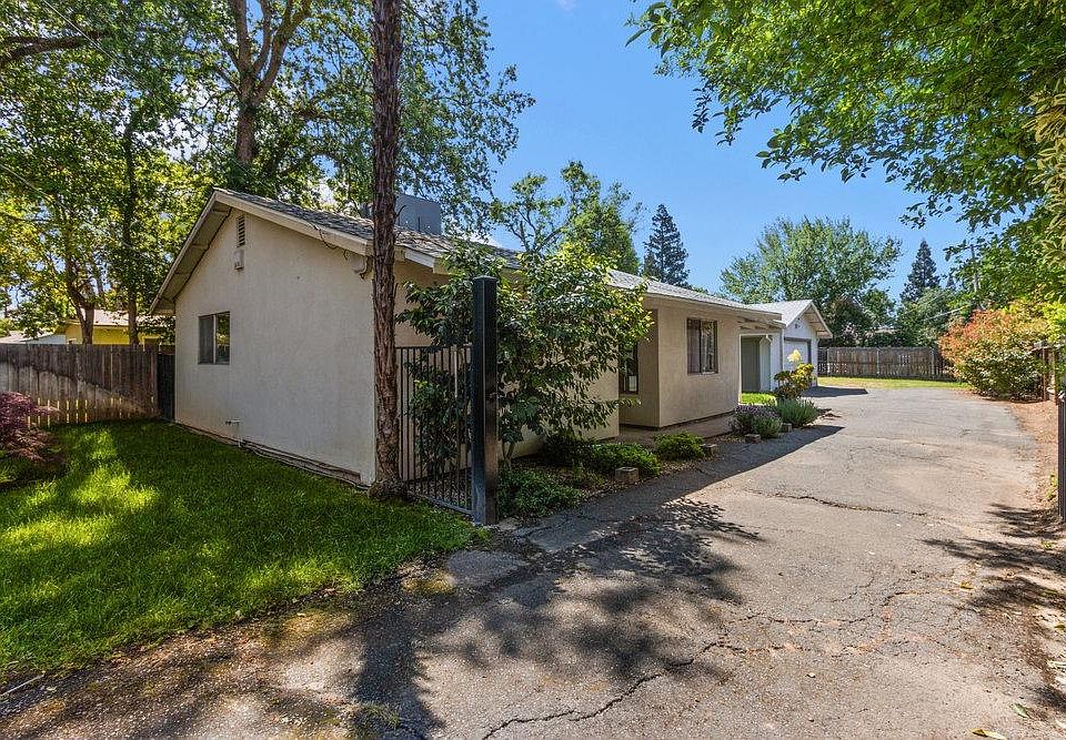 Privacy and charm abound in this adorable Carmichael property! Behind your own private gate awaits a delightful 2-bedroom, 1-bathroom home offering 900 sq ft of comfortable living. Recent peace-of-mind upgrades include a 2022 roof (Yancey Home Improvements), a 2019 HVAC system (Bell Brothers), and a 2023 permitted tankless water heater (Bell Brothers). Hobbyists will love the detached garage/shop with dual 220V outlets. Inside, enjoy the ease of laminate flooring throughout (installed 2022) and a stylish kitchen with seamless counters (installed 2022). The family room features a convenient sliding glass door with interior blinds (installed 2022), leading to a private covered patio. With an oversized 2-car garage and ample space for RV parking or a flourishing garden, this gated Carmichael retreat won't last long! Installed tank less water heater 11/8/2023 Bell Brothers, w/permit,Installed seamless kitchen counters & faucet 4/13/2022 by Signature Surfaces, Family room sliding glass door with interior blinds installed 1/28/2022, all laminate flooring installed 3/17/2022 by Empire Flooring, private covered patio - oversized 2 car garage, and plenty of room for your RV or garden.