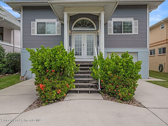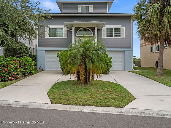 Welcome to the crown jewel of Gulf Landings, a stunning 4-bedroom, 2-bath custom Key West-style waterfront home offering direct access to the Gulf and views for days from every level. Built to last, the home combines coastal beauty with unmatched strength, featuring galvalume structurally insulated steel panels supported by post-and-beam construction anchored into 25 pilings driven into solid limestone. Outside, enjoy your oversized composite dock with full electrical service and a seawall reinforced with steel and concrete—perfect for boaters and sunset lovers alike. Step inside and you'll find the main floor where a gas fireplace creates a welcoming atmosphere, and the chef's kitchen impresses with granite countertops, gas appliances, custom cabinetry, and a tray-ceiling dining room made for memorable gatherings. The master suite is a true retreat, with balcony access, a built-in gas grill, and a spa-like bathroom wrapped floor-to-ceiling in marble tile, featuring a soaking tub, upgraded dual vanity, and dual-head shower. A versatile fourth bedroom or office and a laundry room complete the main level. Upstairs, two additional bedrooms and a shared full bath provide comfort and space for guests or family. Downstairs, the garage transforms into more than just storage—half designed as a vibrant game room or entertainment space, while the other half offers parking and extra storage, each side with both front and rear garage doors that open directly to your backyard and boat dock. From sunrise coffees to sunset cocktails, every inch of this home celebrates waterfront living at its finest. Blending strength, style, and luxury, this is more than just a house... It's the ultimate Gulf Landings lifestyle, waiting for the one lucky buyer who gets to call it home.