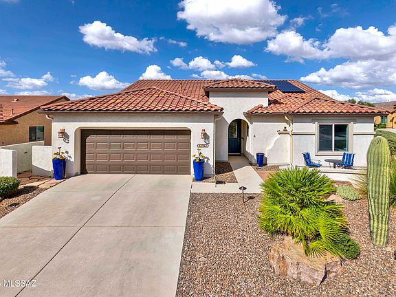 This lovely Artesa model has two bedrooms, two bathrooms, and a versatile den. The beautiful Kitchen features stunning white cabinetry, stainless steel appliances, quartz countertops, and a large island. The master suite features a walk-in closet with custom-built-ins. There is a generously sized great room with custom cabinets, perfect for entertaining. The large backyard is an oasis with beautiful landscaping, a built-in gas grill,a pergola, electric rolling shades, and a large covered patio to sit and enjoy the fabulous Arizona weather! Home is close to all the amenities, has an EV charging station, solar tubes, and *seller-owned Solar*. This home is waiting for its new owner. Come check it out and see what this home and SaddleBrooke Ranch have to offer!