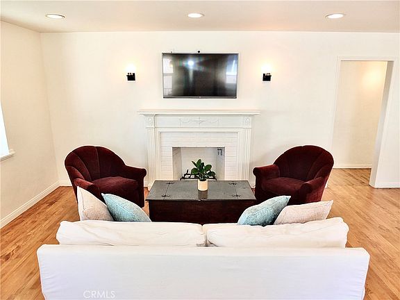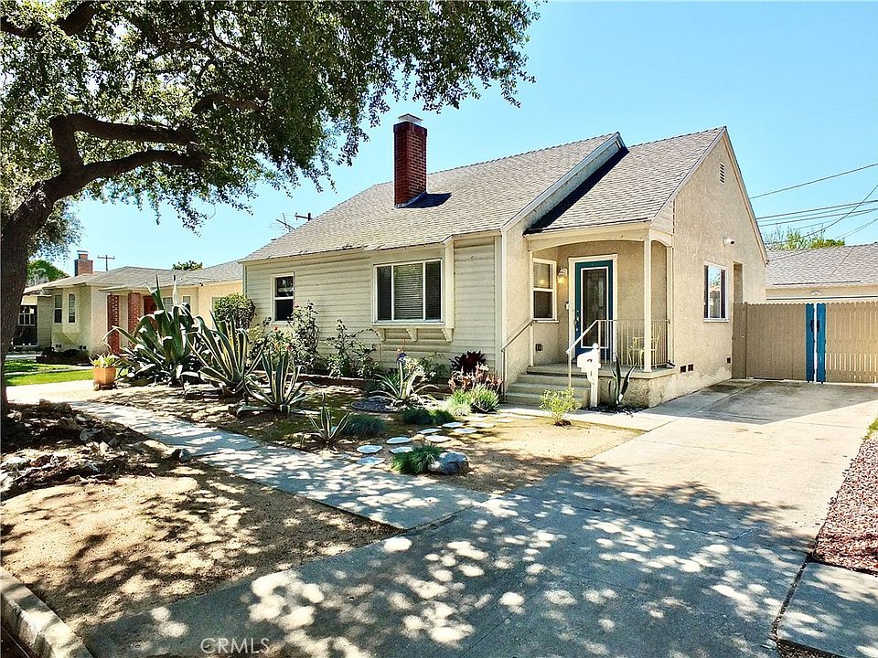 Lakewood three-bedroom, two-bath home on an oak tree-lined street. The home features a fireplace in the living room, dual pane windows, air conditioning, hardwood floors, newer three-panel solid wooden interior doors throughout, granite counters in the large kitchen, dual sinks, and a large glass-enclosed soaking tub in the hall bath, primary bedroom with en suite bath and washer/dryer stackable. French doors from the primary bedroom lead to the large backyard with an expansive green lawn, newer hardscape, and a patio. Detached two-car garage with washer/dryer hookups, sink, finished epoxy floors and finished walls. Attic storage in the garage with a pull-down ladder. A long driveway can accommodate multiple cars.