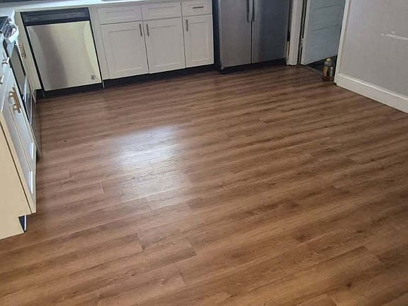 Adorable and updated, 3-bedroom, 2-bath home is nestled in a quiet riverfront neighborhood and offers a warm, inviting interior with beautiful hardwood flooring throughout. The home features an eat-in kitchen and a separate dinning room, an entrance foyer, and a primary bathroom equipped with a tiled shower. The kitchen comes complete with stainless appliances, quartz countertops and updated backsplash. For added convenience, the home includes an in-unit washer and dryer. An attached garage provides secure parking and additional storage space, making this property both functional and comfortable.Pet friendly with a fully fenced back yard and a dog bath area in the garage.