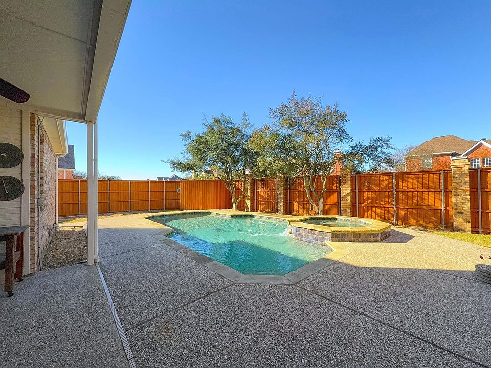 Plano West Sr High School, short walk to Jasper High, middle school and Gulledge Elem School. Custom home with hardwood floors in downstairs Living, Formal Dining, Kitchen, Breakfast, Entry and Bedrooms. Kitchen updated with stainless steel appliances, 5 burner cooktop, Double oven (1 convection), and granite counter tops. Primary Bath updated '21 with Soaker tub, Frameless shower, Backlit mirrors, granite count tops, shower tile, tub surround, and floor tiles all replaced. Pool updated in '17 equipment, filter and cleaner. Pool tile, coping and Pebbletec updated in '16. Roof replaced in '24, exterior painted in '23, upstairs bedrooms repainted in '24, water heaters replaced in'17. Upstairs carpet replaced '17. Game-room could be two living areas room for media and pool table. Garage has 18 ft. door and has an extra door panel in height.