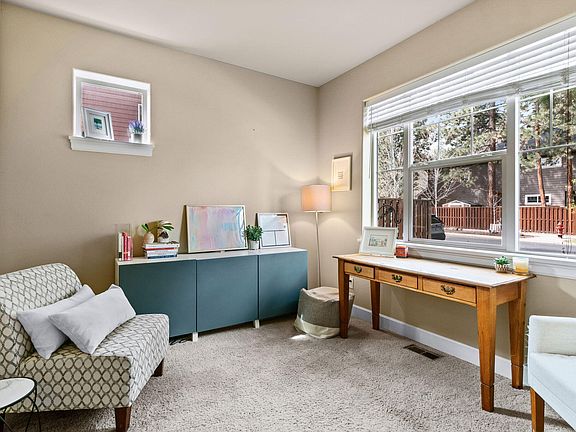 This 2-story home in SW Bend packs a punch with 3 bedrooms plus a bonus room, den, and separate office/guest space with a/c. Downstairs boast of a private den, beautiful dining room, and updated kitchen with quartz countertops, a farmhouse sink, and stainless appliances. The living room has a gas fireplace with views of the private backyard. Upstairs the primary suite has a luxurious freestanding tub, dual sinks, walk-in shower, and walk-in closet. The bedrooms, large bonus room, and laundry are on the second floor. The recently built ground floor separate office studio with half-bath and loft offers endless possibilities for work or play. A fully fenced backyard, with a water feature creates a space for everyone to enjoy. An oversized two-car garage allows for parking and storage. Located just a short stroll from Pine Ridge Elementary School and easy access to the Deschutes River Trail this home has it all! Close to Old Mill, an amazing neighborhood, and no HOA this is a must-see!