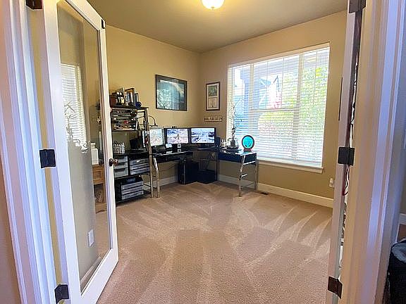 Ideal family neighborhood in Bend is an excellent opportunity with parks, great schools, and walking distance to the Deschutes River Trail, Close to Downtown & Old Mill District. Great room has a wide-open floor plan perfect for entertaining. Hardwood and Stone floors throughout the first floor and master bath. Stainless steel appliances including double door refrigerator w/water & ice dispenser. New glass top downdraft and convection oven and energy-efficient furnace and air conditioning. The office/den can be a 4th bedroom has a closet, window, and built-in wall safe. The master bedroom has vaulted ceilings, an oversized walk-in closet, and a large soaking tub. Additional bedrooms adjoined by Jack and Jill bathroom. The finished double car garage has an entrance to the home and the back yard, including custom dog doors. The back yard is a blank canvas that has raised planters, a sprinkler system, four tall pines, and a juniper that provide shade.
