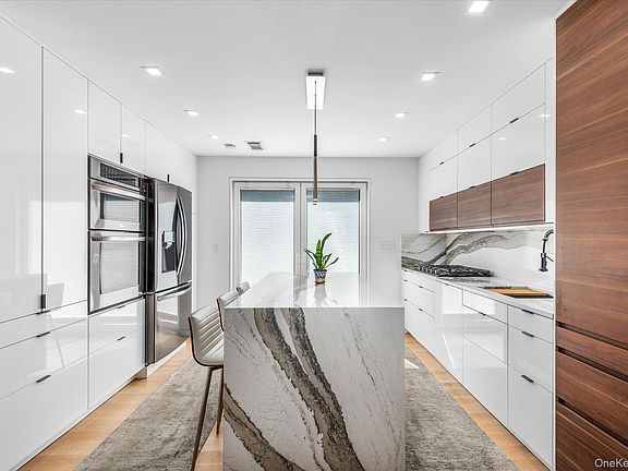 Welcome to this ultra-modern, stylish single-family home in Maspeth, Queens! This detached gem boasts a private driveway and garage, offering both convenience and privacy. The heart of the home is its stunning kitchen, featuring exquisite countertops with elegant veining and a seamless waterfall edge on the island. The cabinetry is top-notch, with sleek finishes throughout. The first floor offers beautiful wide plank hardwood floors and benefits from an open-concept kitchen and living room, perfect for entertaining. Upstairs, you’ll find three bedrooms with a flexible layout to suit your needs. The spacious basement is in mint condition and has high ceilings, large rec room, washer and dryer, a ton of storage, ample closet space and an oversized full bathroom. The home also features central AC, new electrical and plumbing systems, and new European tilt and turn windows, adding elegance and energy efficiency. The exterior is finished with beautiful stucco, and the backyard is secluded and tranquil. Located with easy access to Manhattan, and just moments away from highly rated PS 153, shopping and more, this home is a true masterpiece!