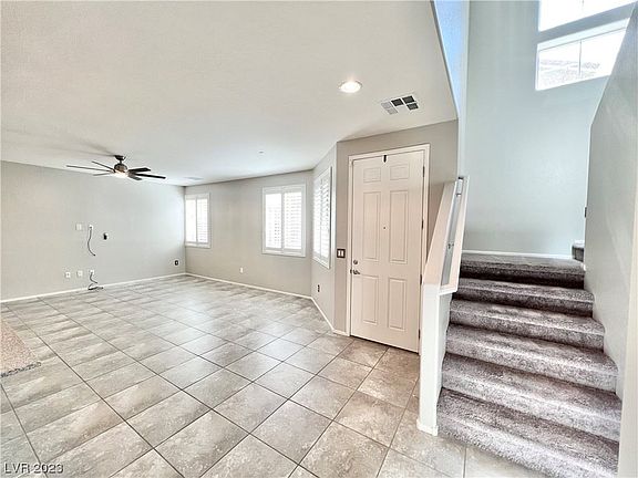 Beautiful Southwest house with 3 BR+2.5 BA+1 LOFT+2 Car Garage and located in gated community with pool and playground! Highly upgraded kitchen with Espresso cabinets, granite countertops, Mosaic backsplash, stainless steel appliances, single basin SS sink & faucet, pending lights and spacious pantry with glass door! Large primary suite with sitting area, double sinks, separate tub and shower and walk-in closet; Good size bedrooms and loft with contemporary ceiling fans/lights; All bedrooms with walk-in closet; Laundry room with sink downstairs; Tiles throughout downstairs and all wet areas; Plantation shutters and custom-made blinds throughout; Courtyard with cover; Very convenient location: within 5 minutes to I-215, IKEA, new Durango Casino and Resort; 10 minutes to banks, restaurants, supermarkets and parks; and 15 minutes to Downtown Summerlin and Costco etc.