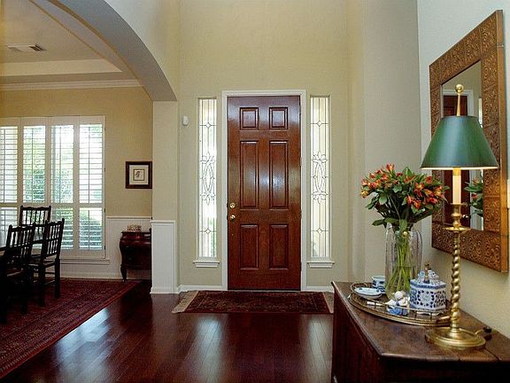 Former model home-Pristine condition! Original owners.Soaring 2 story entry and family room.Hardwoods in entry, dining, living, kitchen and breakfast. Master on main level with marble floors in master bath,garden tub and separate shower. 2 HVAC units-both replaced in 2010. Gameroom upstairs has closet so canbe converted to 4th bedroom.Beautiful low maintenance backyard with deck + flagstone walk path overlooking huge majestic oak trees and greenbelt.