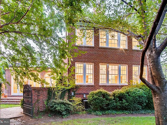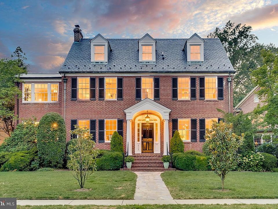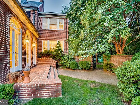Gracious 5 bed, 4.5 bath 1930s brick colonial w/detached 2-car garage in picturesque Belle Haven. History meets levity: stately architecture balanced by sunny windows, skylights & shimmering French doors. Grand 9-foot ceilings & HW floors thru-out. Elegant wainscoting & moldings. Contemporary updates include custom built-ins, apothecary-style master bath & magazine-worthy kitchen. Formal dining, cozy living & private work/play spaces. Organization galore in the mudroom, finished basement, ample closets. Spacious kitchen w/eat-in window banquette, island w/range & seating, immaculate white cabinetry. Outdoor entertaining simplified by the bricked patio, manicured lawn.