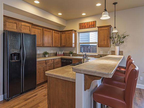 Mountain viewsLarge laundry room upstairsAir conditioningVaulted ceiling entryHardwood floorsOpen floor planTile counter tops