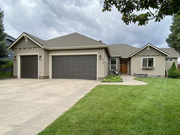 Rare single level offering in desirable quiet SE neighborhood Ridgewater. Stunning sunrise and sunset views, Cascade Mountain views, walking path out the back door, and the peaceful sound of the running water in the canal. This home boasts an over-sized garage, plenty of light, a fantastic layout, and extensive custom cabinets and built-ins throughout. Fourth bedroom makes a fantastic office space. There is an extensive patio accessible from the dining room, living room and primary bedroom. High-quality landscaping and a fully fenced backyard are perfect for your pooch or little ones. Inside there are beautiful maple hardwood floors in the kitchen and dining area, two gas fireplaces (living room and primary bedroom). The bathrooms have a spa-like luxury feel with soaking tubs and walk-in tiled showers. A bonus includes two small sheds for extra storage and 2 hot water heaters. It is walking distance to Alpenglow Park and Caldera High School. This home lives extremely comfortably.