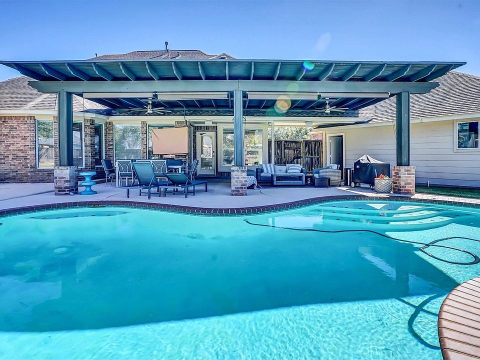 Newly remodeled and nestled on an oversized cul-de-sac lot in the gated community of Lakes on Eldridge N, this stunning move-in-ready home offers fresh interior paint, new carpet, and a highly livable open-concept floor plan. The grand curved staircase and elegant formal dining area welcome you inside, while a private study provides the perfect workspace. The updated kitchen features an island, stainless steel appliances, and warm wood cabinetry, opening seamlessly to the family room. The primary suite is a true retreat with hardwood floors, a fireplace sitting area, pool views, and a beautifully updated bath with an oversized freestanding tub. Upstairs offers a large game room with a hidden room and three spacious bedrooms. Enjoy outdoor living with a sparkling pool, pergola, and large backyard. Oversized 3-car garage with extension. Tenant to pay $400/month for yard and pool maintenance. BUS for BISH, TVS and Awty in neighborhood.