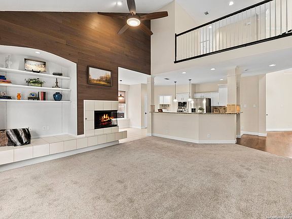 FABULOUS 2-story, 4-bedroom home with a 3-car garage & a sparkling inground pool, ideally situated on a corner cul-de-sac in the desirable Hart Ranch community! This open-concept layout offers high ceilings, two living areas, crown molding, art niches, a walk-in pantry, & large utility room. The spacious downstairs primary suite features a bay window overlooking the pool and a beautiful updated ensuite bathroom with walk-in oversized shower. The gourmet kitchen opens to the family room centered around the cozy fireplace for chilly winter nights. The open floor plan & relaxing backyard is an entertainer's dream with it's beautiful pool, extended deck, & plenty of space for BBQs & gatherings surrounded by mature trees for extra privacy. Worry-free & move-in ready featuring significant recent improvements: newly installed downdraft cooktop, oven/microwave, updated attic insulation, downstairs carpet, laminate flooring, newly installed fence, deck & railing, Kinetico water softener, whole-home tankless water heater, 2 newer HVAC units, replaced 220 electrical panel, & more! Easy access to IH-10, the Medical Center, La Cantera, The Rim, & major employers. Neighborhood amenities include a community pool, clubhouse, basketball court, & playground. This home is updated & ready to yours today!