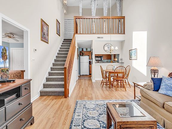 BACK ON THE MARKET THROUGH NO FAULT OF THE SELLER! Welcome home to the charming community of Ocean Pines! Located in the heart of Surfside Beach and east of Highway 17 Business, this well loved area boasts lush landscaping, a lovely exterior, beautifully maintained community pool and tennis courts, all while being a quick walk or golf cart ride to the beach! As you enter this 2 bedroom, 2 bathroom townhome, you will love the amount of natural light pouring into the home from the sliding glass doors and the skylight. The first level of the home offers a vaulted living and dining area with access to the front patio, wooden beam accents and a well appointed kitchen with stainless steel appliances and granite counters. The primary suite is also on the first floor of the home with his and hers closets and a convenient step in shower, as well as sliding glass doors to the patio. The laundry room, pantry, and additional storage is also found on the first floor. Traveling upstairs, you'll find a loft area that is perfect for an office space, additional living, or could easily be partitioned off for extra sleeping options. Upstairs also has the second bedroom with vaulted ceilings, his and hers closets, and its own balcony, full bathroom with a tub/shower combo, and even more storage available! This home has been well maintained and well loved, with a 2018 HVAC, 2023 gutter guards and carpet that is only two years old. This townhome is not in a flood zone and part of the St. James School District, close to area parks, dining, entertainment and the most loved beaches! Take the virtual 3D tour and schedule your appointment today!