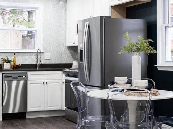 New windowsCompletely fenced propertyPrivate backyardCovered front porchMarble herringbone backsplashQuartz countertopSoft close cabinets