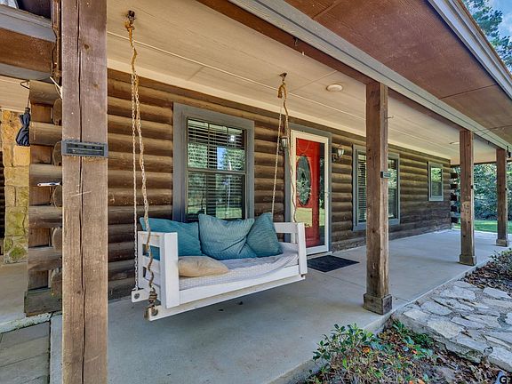 Discover the perfect blend of rustic charm and modern comfort in this stunning log cabin nestled on 14 acres of serene countryside. Located just 5 miles from Palestine, TX, this spacious home offers 5 bedrooms and 3 bathrooms, providing ample space for family and guests. Step inside to find 3,724 square feet of inviting living space, including a master bedroom featuring a ceramic tile walk-in shower, a relaxing jacuzzi tub, and dual master closets. The open floor plan showcases beautiful wooden details, complementing the cabin’s natural surroundings. Enjoy the great outdoors with your own above-ground pool, a stocked pond brimming with fish, and trails perfect for hunting, ATV riding, or leisurely walks. The screened porch offers a peaceful retreat where you can unwind and take in the picturesque views. It also has 2 fenced acres for horses! Palestine ISD ensures excellent educational opportunities for your family, making this not just a home but a lifestyle. Don’t miss the chance to own this exceptional property where comfort meets tranquility.